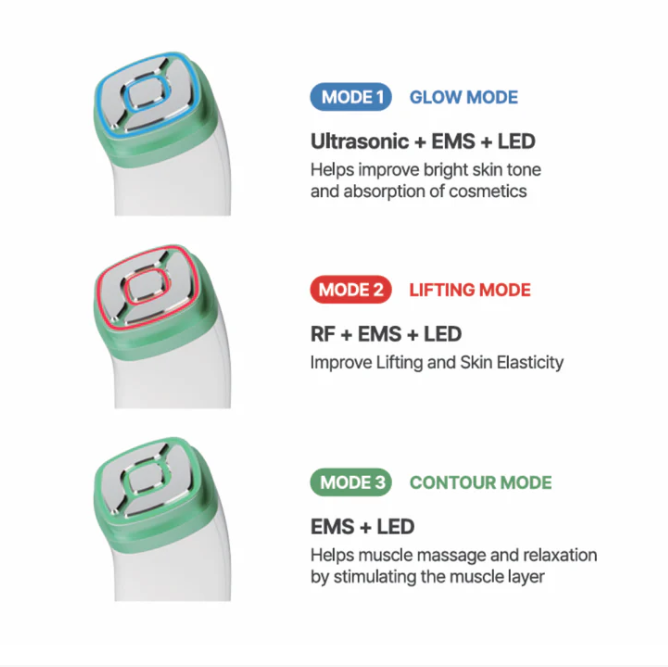 MODE 1: GLOW MODE Ultrasonic + EMS + LED
