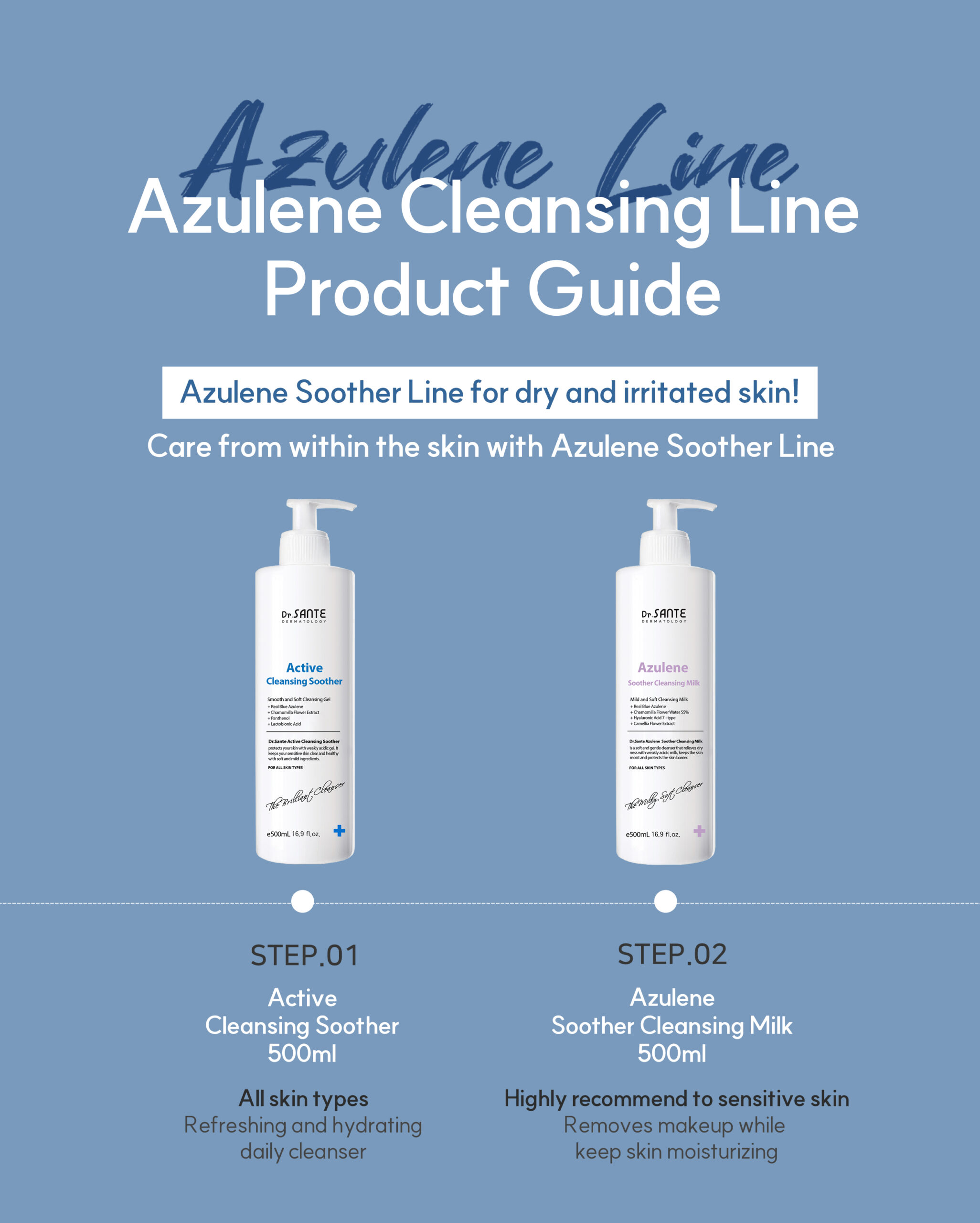 Active cleansing soother contains Guaiazulene that relaxes and revitalizes irritated and dull skin. Chamomile flower extract accounts for 23% of the whole ingredients, which is excellent in moisturizing, soothing, and reinforcing skin barrier without feeling dryness. This helps form a skin protective film covering from external stimulus and helps skin stay healthy.