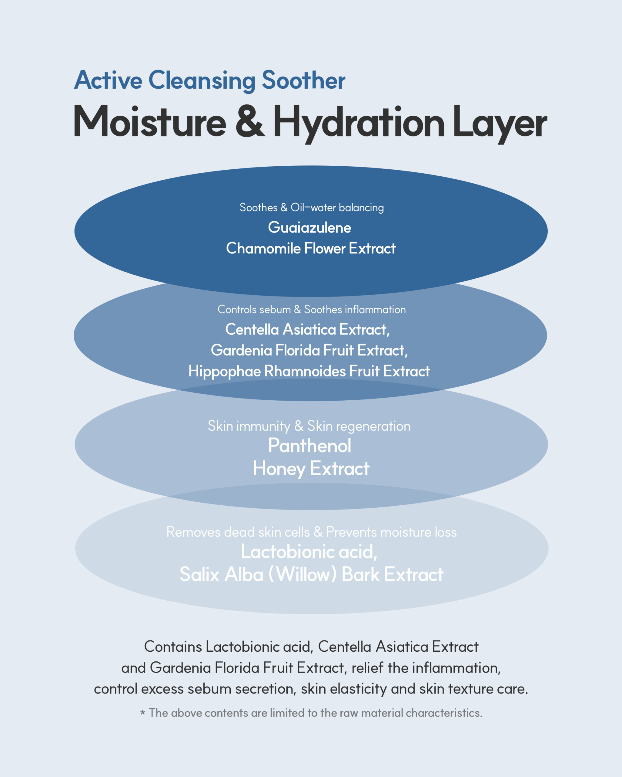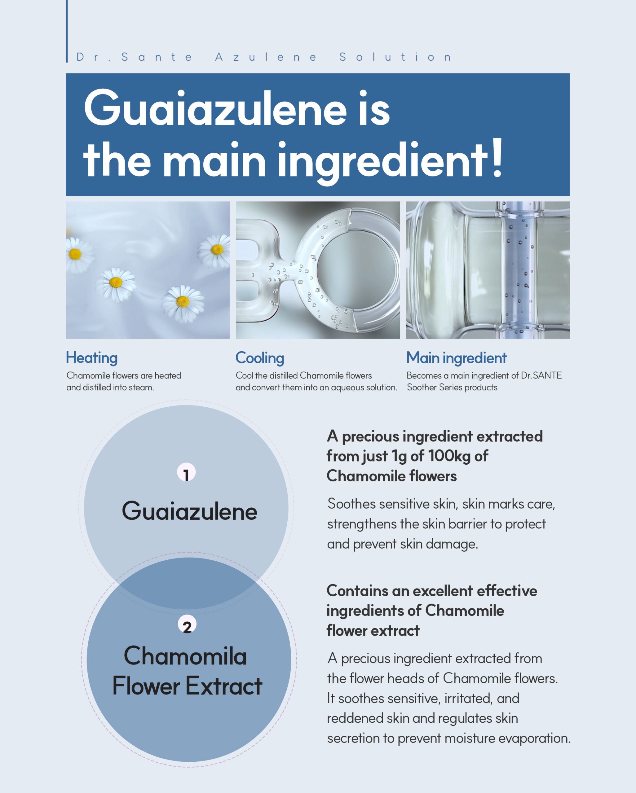 Active cleansing soother contains Guaiazulene that relaxes and revitalizes irritated and dull skin. Chamomile flower extract accounts for 23% of the whole ingredients, which is excellent in moisturizing, soothing, and reinforcing skin barrier without feeling dryness. This helps form a skin protective film covering from external stimulus and helps skin stay healthy.