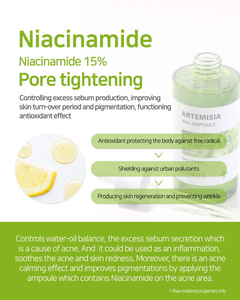 Artemisia Capillaris Extract (67%), Niacinamide (150,000 ppm), Glycerin, Butylene Glycol, Dipropylene Glycol, Water, 1,2-Hexanediol, Capryloyl Salicylic Acid, Hibiscus Abelmoschus Extract, Dioscorea Japonica Root Extract, Chondrus Crispus Extract, Linum Usitatissimum (Linseed) Seed Extract, Salvia Hispanica Seed Extract, Erythritol, Allantoin, Dimethyl Sulfone, Lavandula Angustifolia (Lavender) Flower Water, Melaleuca Alternifolia (Tea Tree) Extract, Pyrus Malus (Apple) Fruit Extract, Camellia Sinensis Leaf Extract, Melia Azadirachta Leaf Extract, Salix Alba (Willow) Bark Extract, Sodium Hyaluronate, Lactic Acid/Glycolic Acid Copolymer, Polyvinyl Alcohol, Centella Asiatica Extract, Lecithin, Paeonia Suffruticosa Root Extract, Mannitol, Ethylhexylglycerin, Panthenol, Carthamus Tinctorius (Safflower) Flower Extract, Gardenia Florida Fruit Extract, Dextrin, Arginine, Betaine, Corallina Officinalis Extract, Melia Azadirachta Bark Extract, Ocimum Sanctum Leaf Extract, Moringa Oleifera Seed Oil, Hydroxyacetophenone, Ammonium Acryloyldimethyltaurate/VP Copolymer, Polyglyceryl-4 Laurate, Caprylyl Glycol, Caprylyl/Capryl Glucoside, Polyglyceryl-10 Laurate, Carbomer, Pentylene Glycol, Disodium EDTA, Fragrance