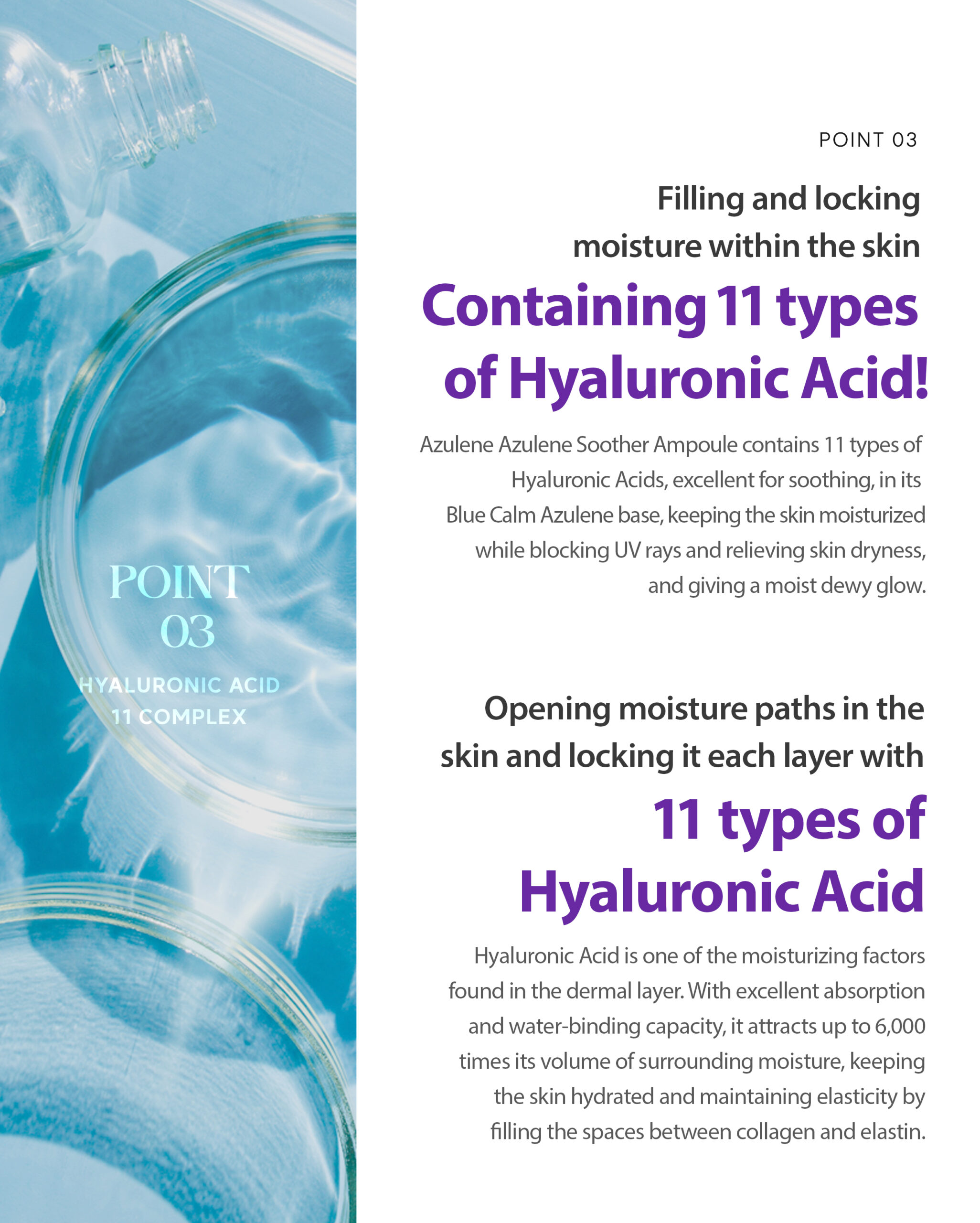 Chamomile Flower Water (79%), Purified Water, Butylene Glycol, Dipropylene Glycol, Methylpropanediol, 1,2-Hexanediol, Glycerin, Sodium Hyaluronate Crosspolymer, Sodium Acetylated Hyaluronate, Hydroxypropyltrimonium Hyaluronate, Hydrolyzed Hyaluronic Acid, Potassium Hyaluronate, Hydrolyzed Sodium Hyaluronate, Sodium Hyaluronate, Sodium Guanylate Sulfonate (1,000 ppm), Centella Asiatica Extract, Beta-Glucan, Bottle Gourd Extract, Lotus Root Extract, Raspberry Extract, Acai Palm Fruit Extract, Rosehip Extract, Cranberry Extract, Vitis Vinifera (Grape) Fruit Extract, Elderberry Fruit Extract, Strawberry Extract, Panthenol, Pentylene Glycol, Caprylyl Glycol, Tocopheryl Acetate, Phytosterol Isostearate, Caprylic/Capric Triglyceride, Hydroxyacetophenone, Squalane, Carbomer, Tromethamine, Sodium Hyaluronate, Disodium EDTA, Fragrance, Ethylhexylglycerin.