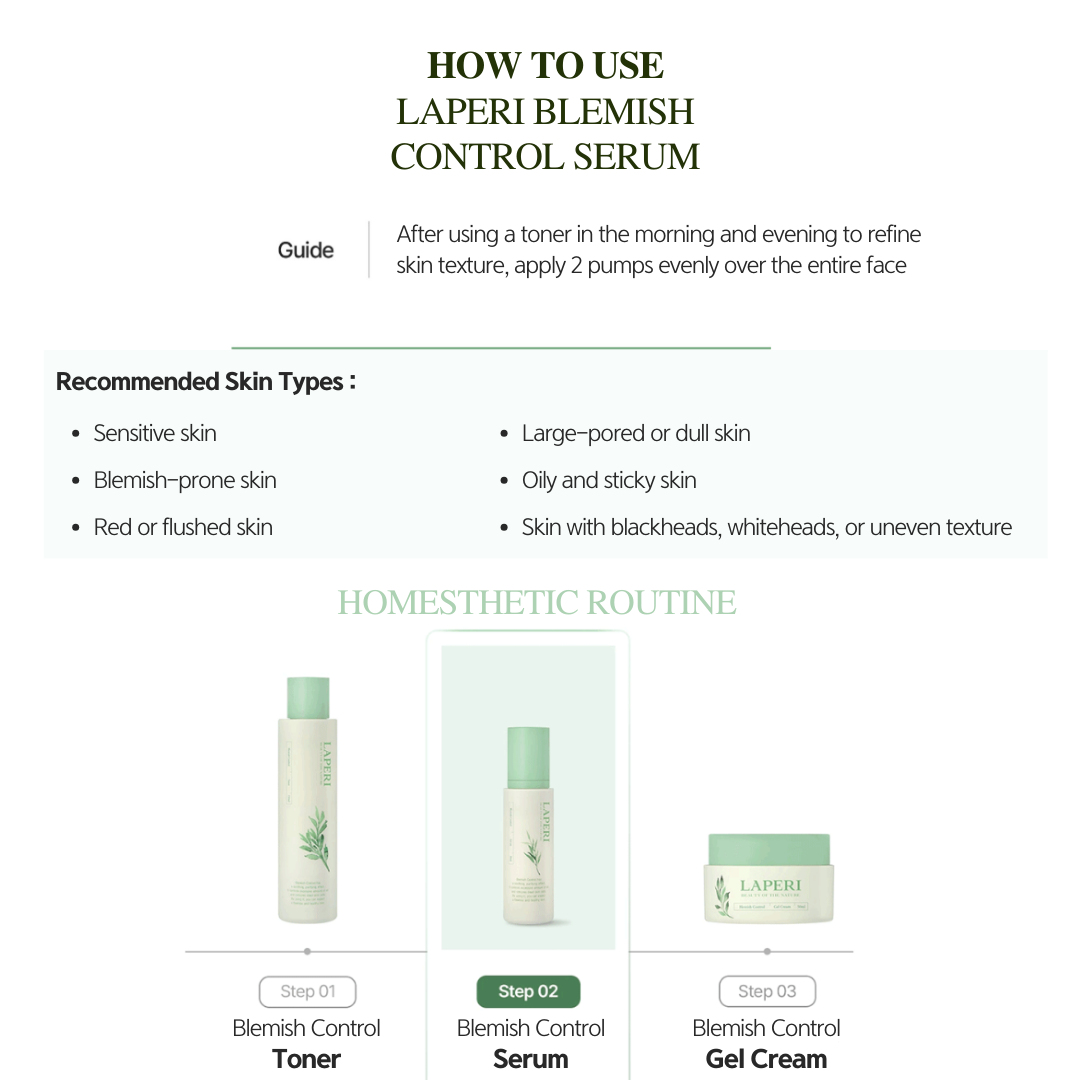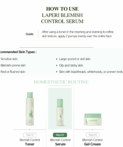 Laperi Blemish Control Line: A skincare line designed for trouble care, helping restore and maintain skin balance neither lacking nor excessive.