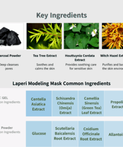 The Laperi Perfection Modeling Mask is a high-tech facial pack with a special formulation that does not dry for 72 hours. It is used by mixing high-concentration essence gel and high-quality glucose powder without mixing water. Compared to general modeling, it has a very good sense of moisture and cooling, and has excellent adhesion, effectively delivering active ingredients to the depth of the skin. It is convenient because it can be used without weighing, and it is clean because there is no residue left after removal.