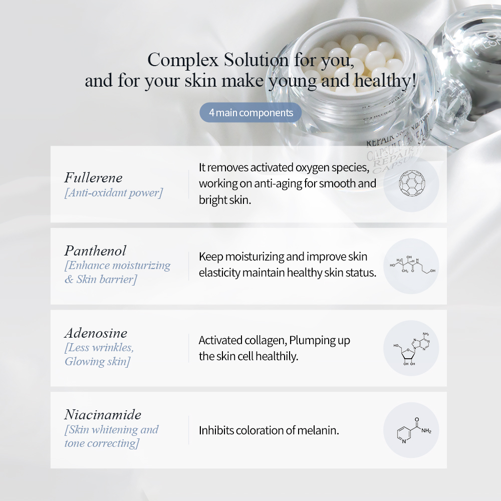 Lon.G Repair Skinback Capsule Cream contains fullerene, the most powerful antioxidant on Earth!