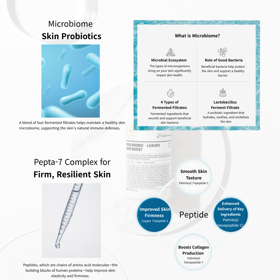 Purified Water, Butylene Glycol, Glycerin, Bis-PEG-18 Methyl Ether Dimethyl Silane, Lactobacillus Ferment, Sodium Hyaluronate, Hydrolyzed Sodium Hyaluronate, Hydrolyzed Hyaluronic Acid, Hyaluronic Acid, Betaine, Glycyrrhiza Glabra (Licorice) Root Extract, Camellia Sinensis Leaf Extract (Green Tea), Brassica Oleracea Italica (Broccoli) Extract, Panax Ginseng Root Extract, Lactobacillus/Huangqi (Astragalus) Root Ferment Extract Filtrate, Citrus Junos Fruit Extract, 1,2-Hexanediol, Sodium Hyaluronate Crosspolymer, Caprylyl Glycol, Palmitoyl Tripeptide-1, Palmitoyl Tetrapeptide-7, Palmitoyl Pentapeptide-4, Palmitoyl Dipeptide-5 Diaminobutyroyl Hydroxythreonine, Palmitoyl Dipeptide-6 Diaminohydroxybutyrate, Dipeptide Diaminobutyroyl Benzylamide Diacetate, Acetyl Hexapeptide-8, Sodium Acrylates Copolymer, Sodium Polyacryloyldimethyl Taurate, Hydroxyethyl Acrylate/Sodium Acryloyldimethyl Taurate Copolymer, Hydroxyacetophenone, Polyglyceryl-10 Laurate, Polyglyceryl-10 Myristate, Tocopherol, Allantoin, Silica, Polyquaternium-51, Ethylhexylglycerin, Phenoxyethanol, Pentylene Glycol, Ascorbyl Glucoside, Adenosine, Disodium EDTA, Benzyl Alcohol, Citric Acid, Sodium Citrate, Limonene, Linalool, Fragrance, Isobutyl Methyl Tetrahydropyranol.